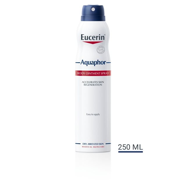 Eucerin Aquaphor Body Ointment Spray is clinically proven to repair very dry, irritated skin by creating the ideal protective barrier for skin regeneration. The spray dispenser gives 3600 access to any area of the body.