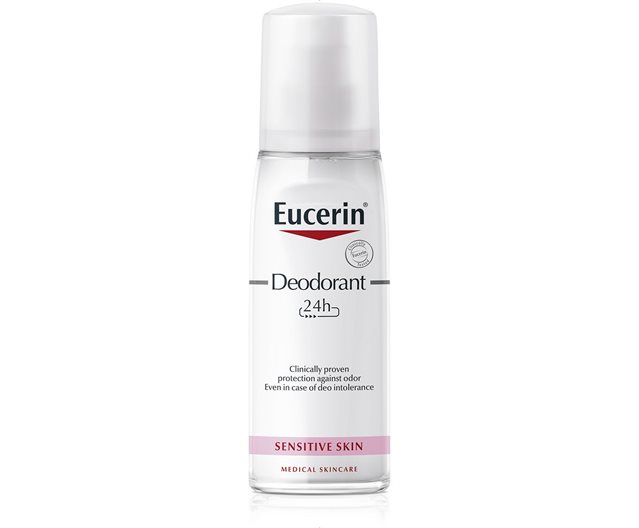Eucerin’s Sensitive Skin deodorants are very effective at reducing odor, but they have not been designed specifically for heavy or excessive sweating. If you suffer from heavy sweating we recommend Eucerin 48h Anti- Transpirant Roll-On. If you experience excessive sweating try Eucerin 72h Anti-Transpirant Intensive Pump Spray.