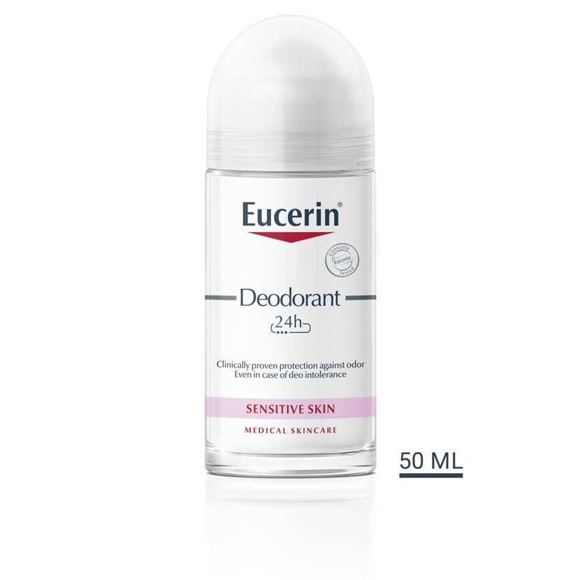 The pH scale measures how acidic or alkaline a substance is on a scale of 0-14. The higher the number, the lower the acidity. Skin is mildly acidic, with a pH value around 5. Eucerin’s 24h Deodorant Sensitive Skin Roll-On also has a pH of 5 and helps to maintain skin’s natural balance. This supports skin’s barrier function making it more resistant to external irritants and reducing sensitivity.