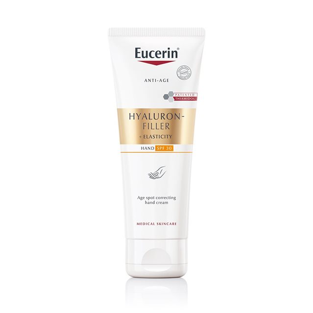 Yes. Eucerin Hyaluron-Filler + Elasticity Age Spot Correcting Hand Cream SPF 30 visibly reduces the appearance of dark spots and prevents their reappearance.