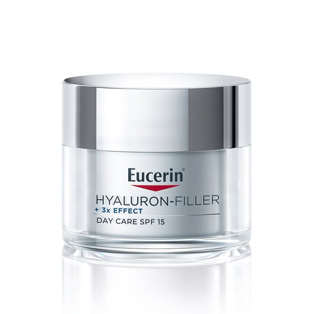 Eucerin Hyaluron-Filler Day Care for Dry Skin with SPF 15 is specially formulated to provide intensive hydration and anti-wrinkle care for dry skin, thanks to its rich, nourishing texture. If you have normal to combination skin, Eucerin also offers Hyaluron-Filler +3x Effect Day Care SPF 15 for normal and combination skin, which provides the same wrinkle-plumping benefits in a lighter, fast-absorbing formula.