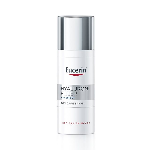 The Eucerin Hyaluron-Filler +3x Effect range is specifically developed to counteract the first signs of aging, such as fine lines and deeper wrinkles, which typically start to appear around the age of 30 due to genetics and lifestyle factors. Eucerin Hyaluron-Filler Day Care SPF 15 is a face moisturizer with SPF 15 that combines high and low molecular Hyaluronic Acid to visibly plump wrinkles while maintaining long-lasting moisture.