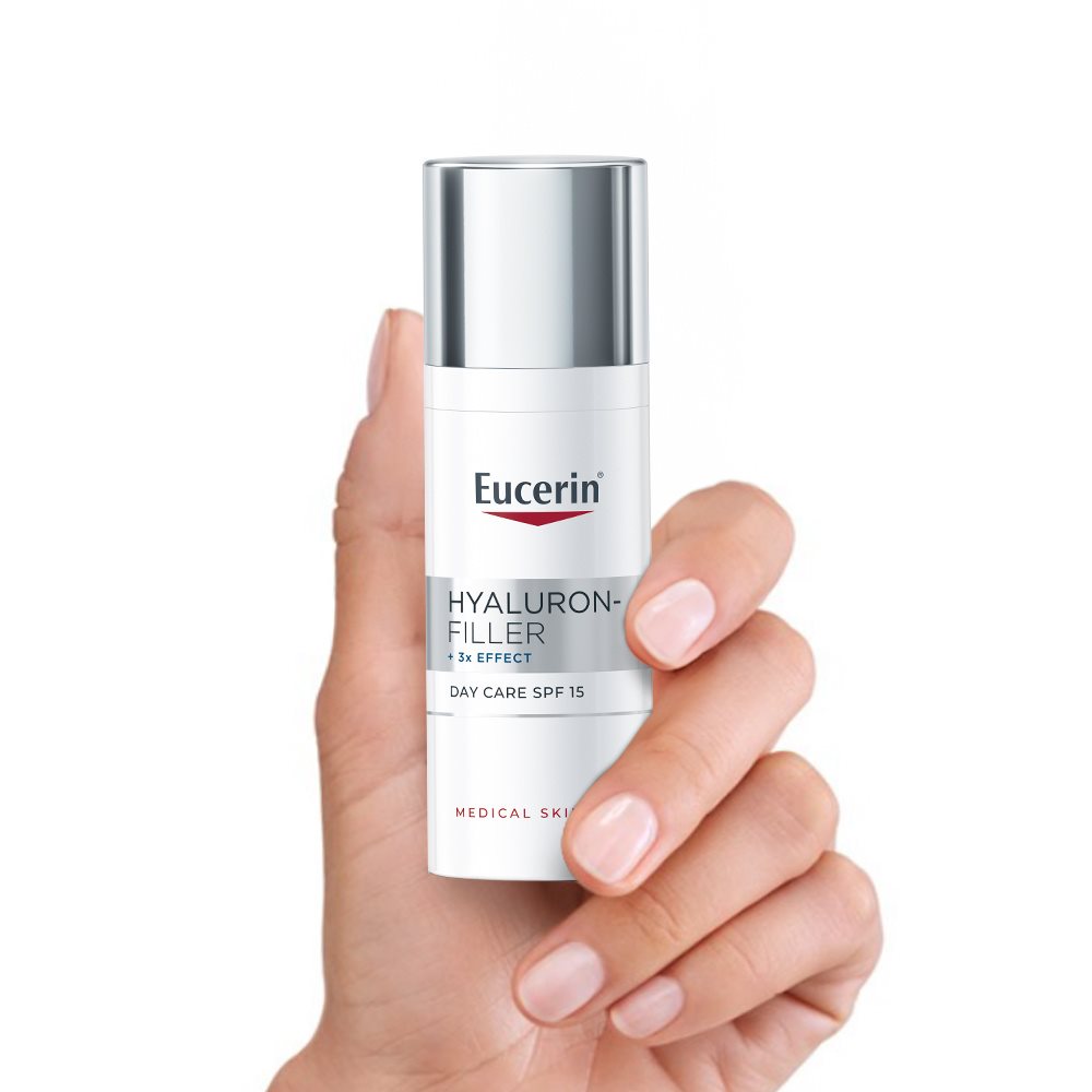 Daily UV exposure accelerates skin aging, making SPF an essential part of any skincare routine. Eucerin Hyaluron-Filler 3x Effect Day Care SPF 15 provides sun protection while allowing the skin to fully absorb its wrinkle-filling ingredients, making it an ideal option for those looking for broad hydration and anti-aging care in one step.