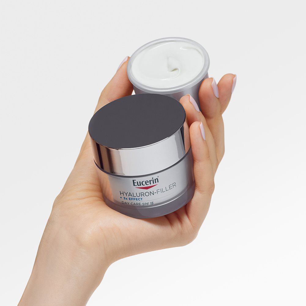 Eucerin Hyaluron-Filler Day Cream for Dry Skin with SPF 15 is specially formulated to provide intensive hydration and anti-wrinkle care for dry skin, thanks to its rich, nourishing texture. If you have normal to combination skin, Eucerin also offers Hyaluron-Filler +3x Effect Day Care SPF 15 for normal and combination skin, which provides the same wrinkle-plumping benefits.