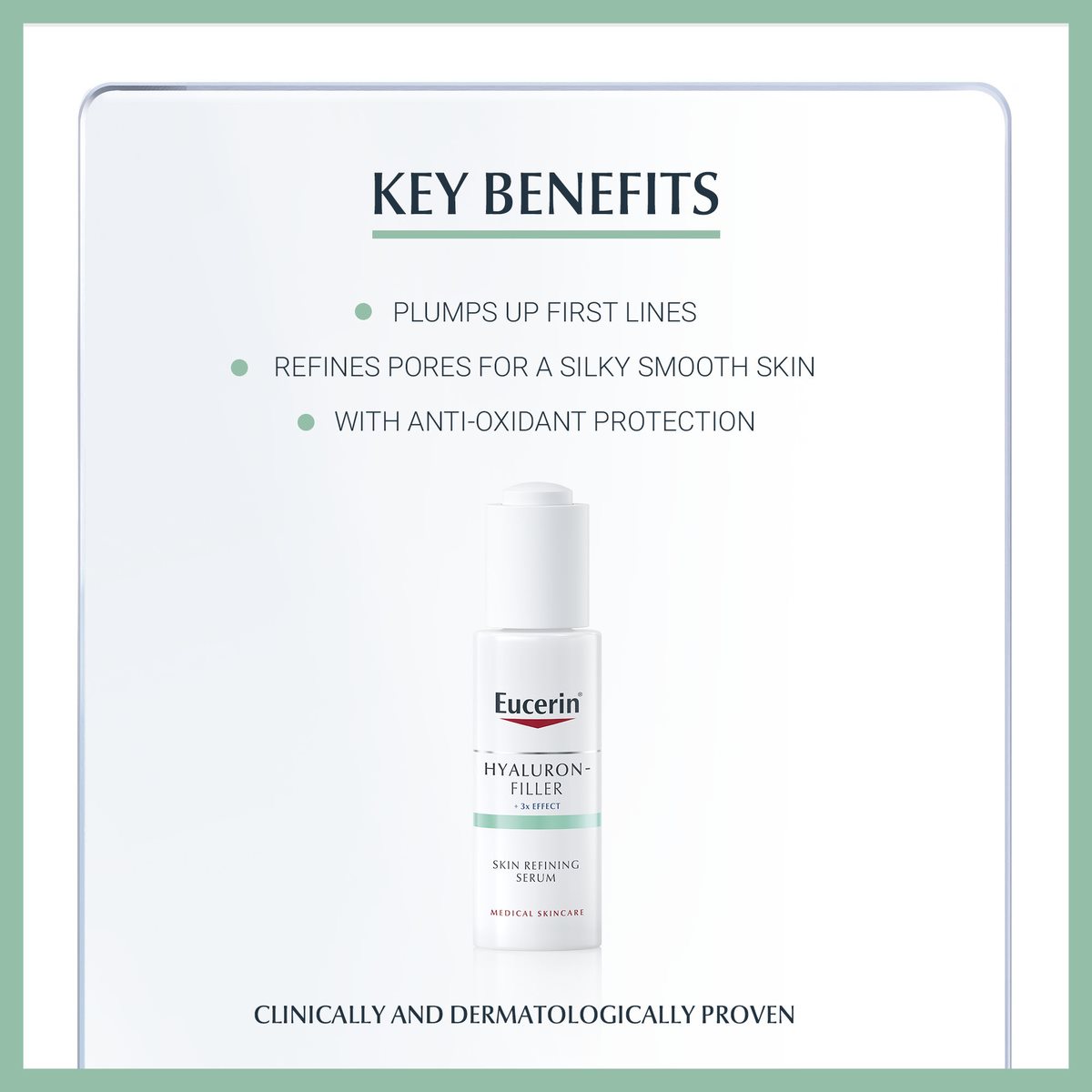 Tackle first signs of aging and refine pores Eucerin’s new Hyaluron-Filler Skin Refining Serum. This ultra-light serum contains three key actives including Hyaluronic Acid, Glycolic Acid and Lactic Acid to leave skin silky-smooth. The formula with anti-oxidants also protects skin against free radicals and damage from environmental aggressors. In a study, 97% of respondents confirmed smooth skin, 88% agree fine lines appear refined and 91% say skin is left feeling non-greasy after using the Eucerin Hyaluron-Filler Skin Refining Serum (1) The Skin Refining Serum is suitable for skin showing first signs of aging such as fine lines, enlarged pores or rough or dull skin. The ultra-light and non-greasy texture make this serum excellent for those with oily skin or for layering under make-up.