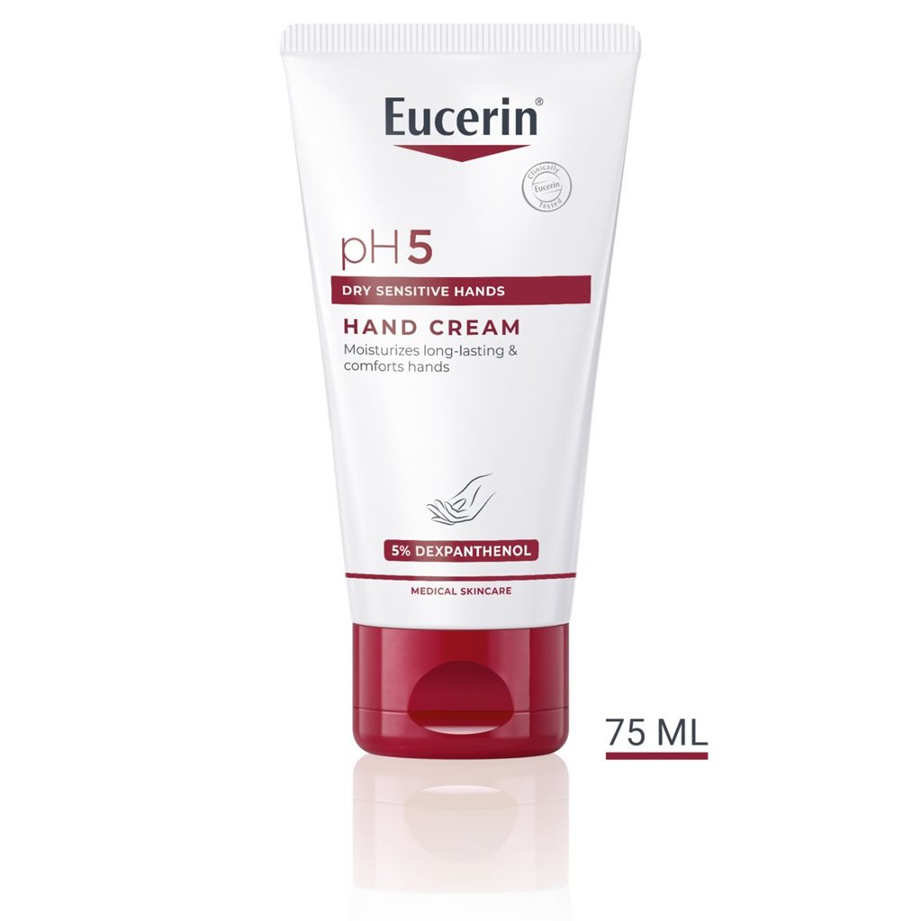 Eucerin pH5 Hand Cream delivers long-lasting moisturization, restores skin’s natural defenses and leaves it smooth and protected.